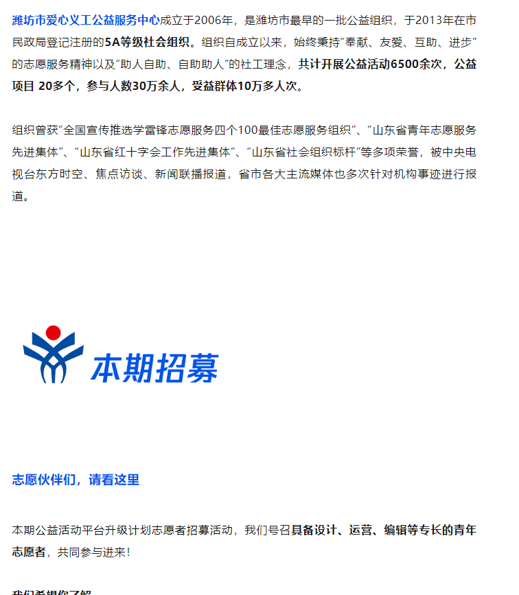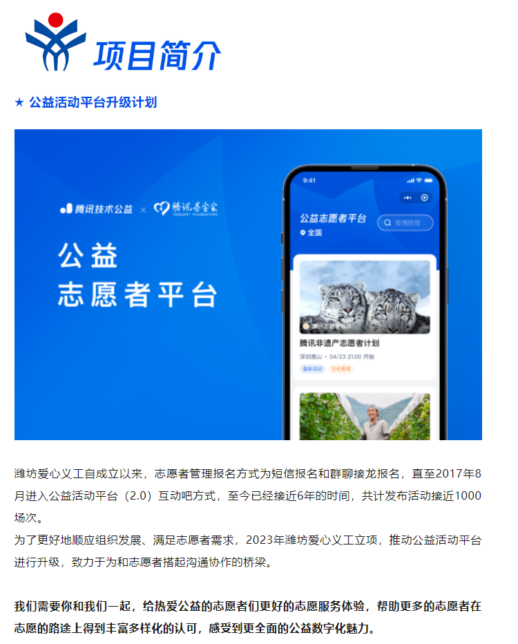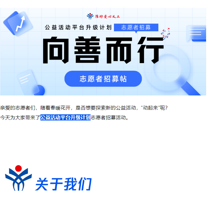 【志愿者招募】公益活动平台升级计划,等你来!