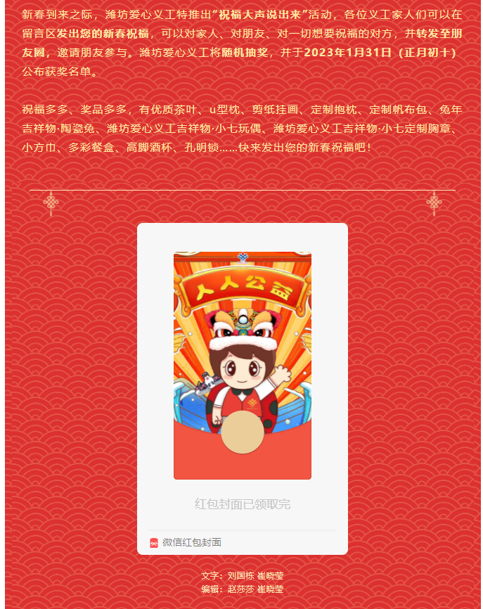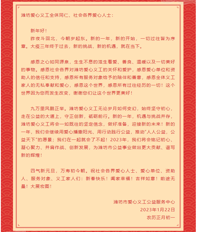 【潍坊爱心义工】新春贺词