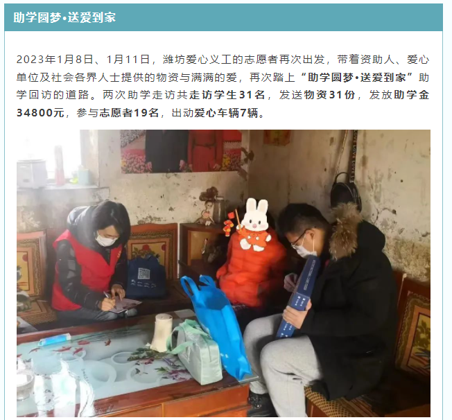潍坊爱心义工1月份工作报告