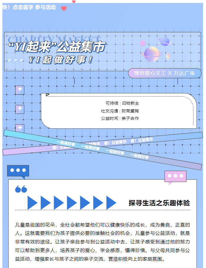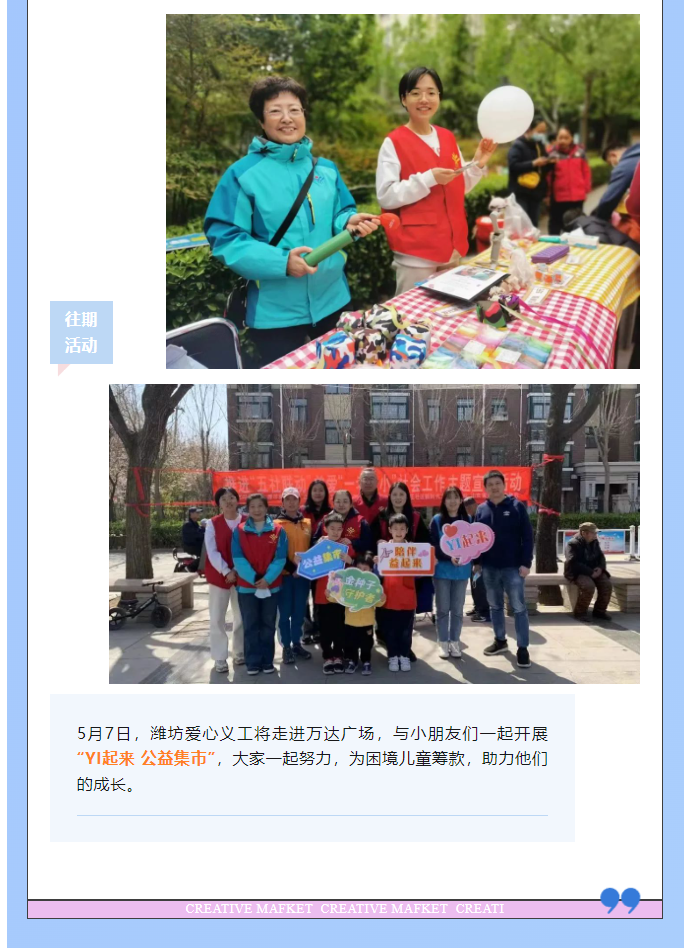 【“YI起来”公益集市】潍坊爱心义工 x 万达广场,YI起做好事,邀请你来!
