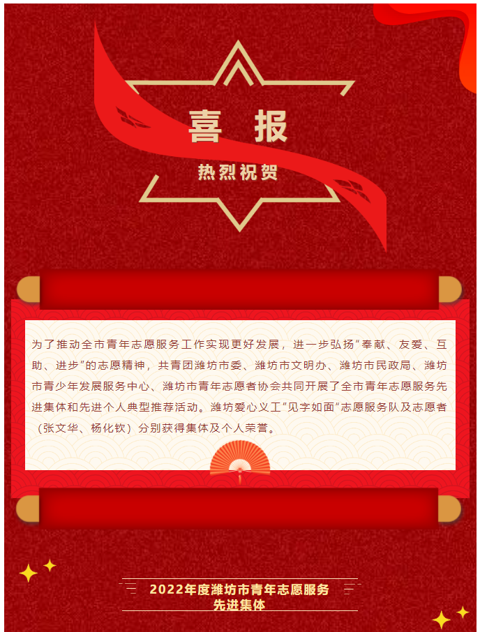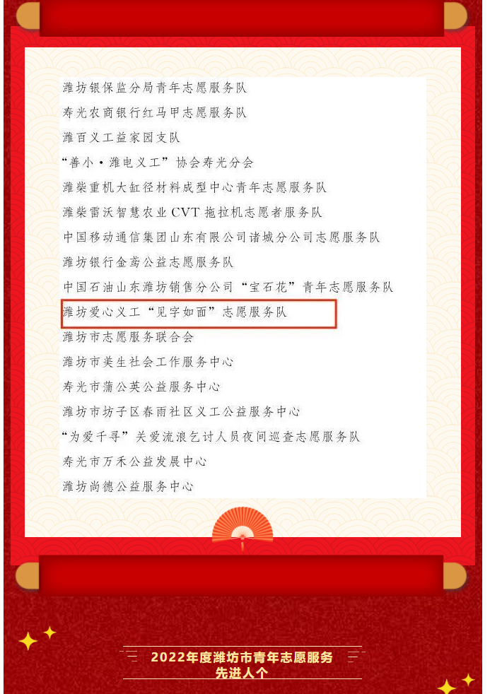 喜报 | 潍坊爱心义工团队荣获全市青年志愿服务先进典型