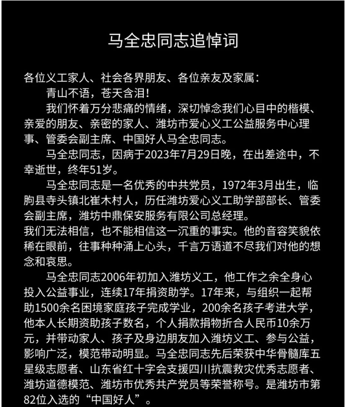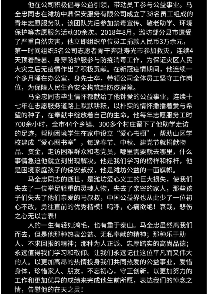 马全忠同志追悼词