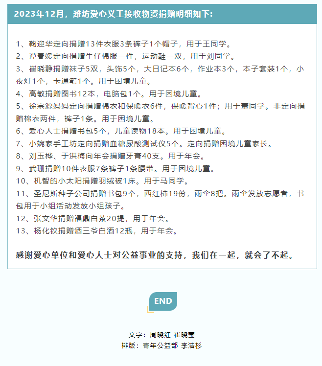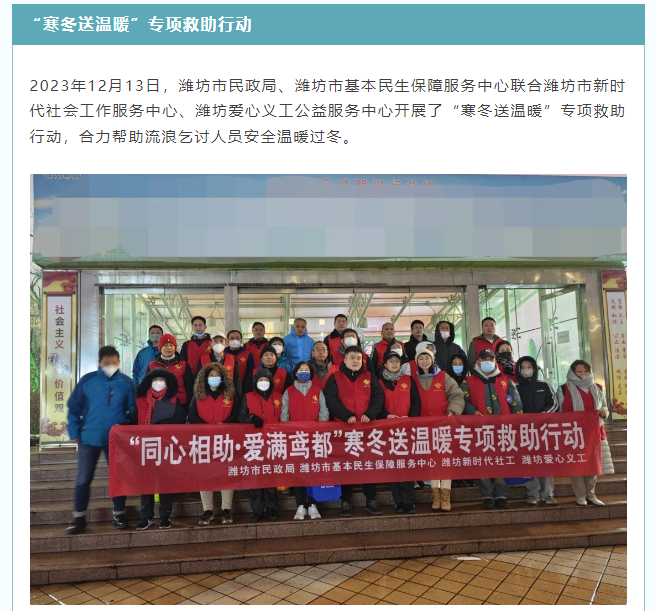 潍坊爱心义工12月工作报告