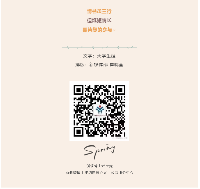 【潍坊爱心义工】爱满鸢都——三行“情”书征文大赛开始啦