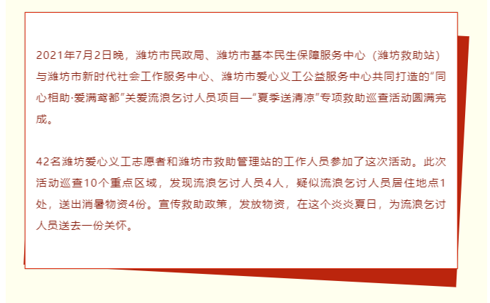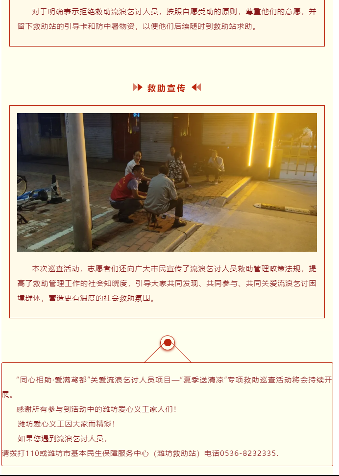 【潍坊爱心义工】“同心相助·爱满鸢都”夏季送清凉夜间专项巡查活动圆满完成