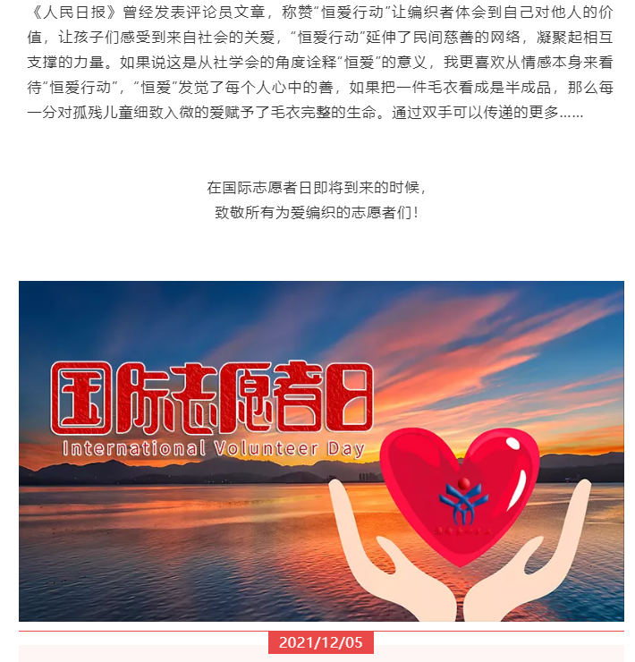 【潍坊爱心义工】国际志愿者日:一针一线总关情·“恒爱行动”暖童心