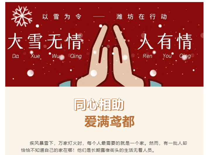 【潍坊爱心义工】同心相助·爱满鸢都 | 以雪为令,我们在行动
