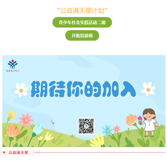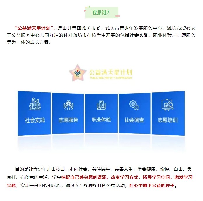【潍坊爱心义工】『公益满天星计划』青少年社会实践活动二期开始招募啦!