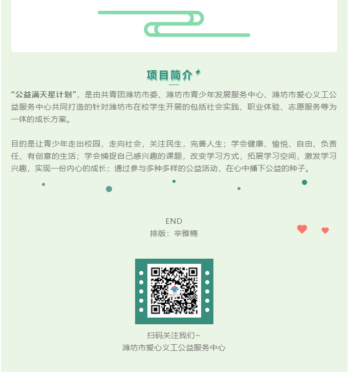 【潍坊爱心义工】『公益满天星计划』青少年社会实践活动二期开始招募啦!