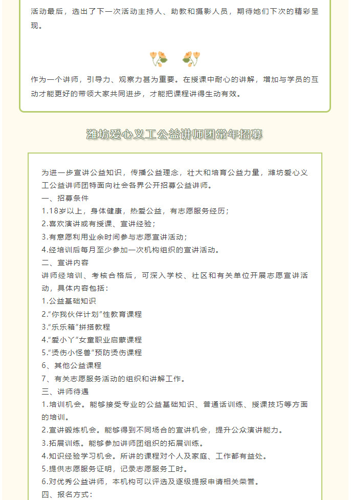 【机构动态】潍坊爱心义工公益讲师团第二期内训活动圆满完成